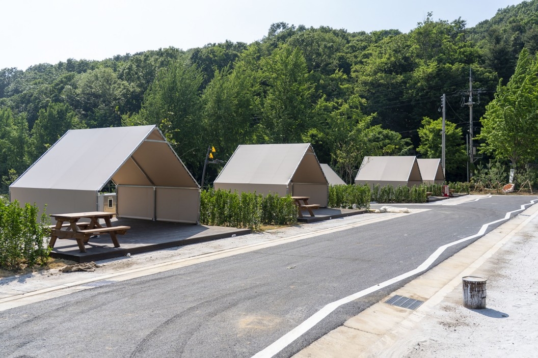 총 96면의 사이트 중 12면은 반려견 동반이 가능한 사이트이며, 14면은 캠핑 장비가 없는 이들을 위한 ‘텐트 설치 제공형’입니다.