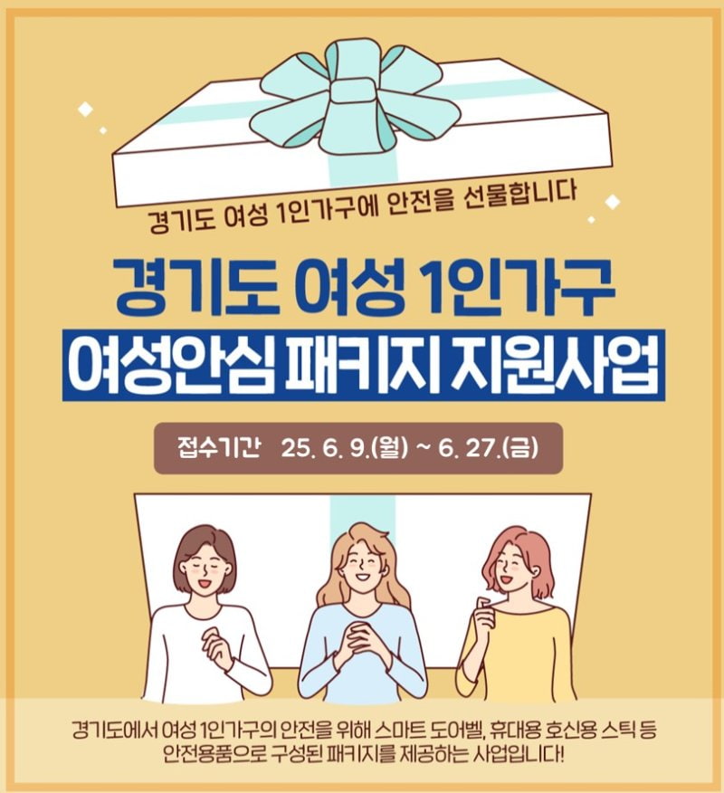 경기도가 2025년 ‘여성안심패키지’ 지원 사업의 대상을 확대하며, 6월 9일부터 신청 접수를 시작합니다.