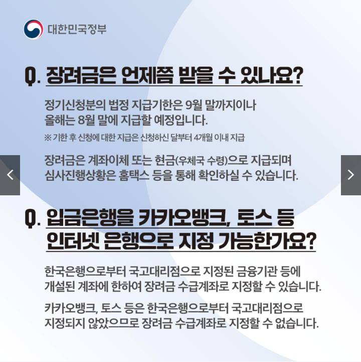 ✔️ 정기신청: 매년 5월 신청, 8월 말 지급