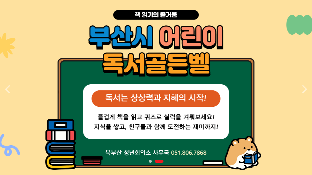 책을 읽고 퀴즈를 통해 배운 내용을 체험하는, 초등학생을 위한 독서 퀴즈 대회입니다.