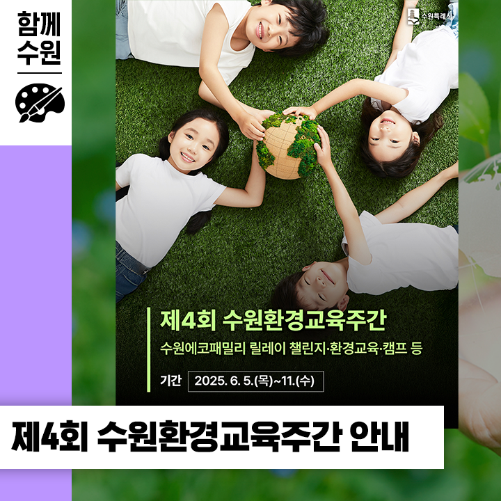 2025년 6월, 수원시가 ‘에코패밀리’를 주제로 제4회 수원환경교육주간을 맞아 다양한 시민 참여형 프로그램을 준비했습니다.